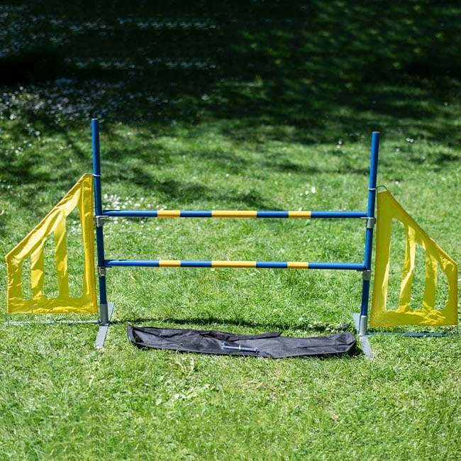 Die FCI-konforme Agility-Hürde wird zerlegt in einer praktischen Tragetasche geliefert.
