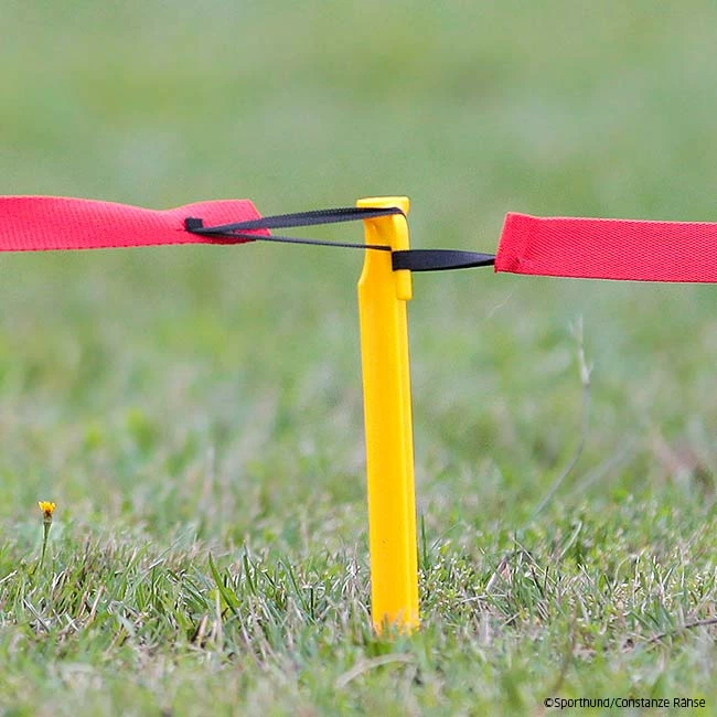 Bei fortgeschrittenen Hunden kann jedes zweite Gurtband entfernt und der Kreis als Hilfe so schrittweise abgebaut werden.