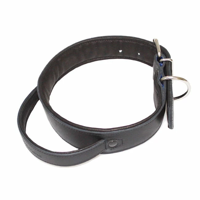 Das Sporthund Hetzhalsband aus Leder ist gepolstert und mit Handgriff.