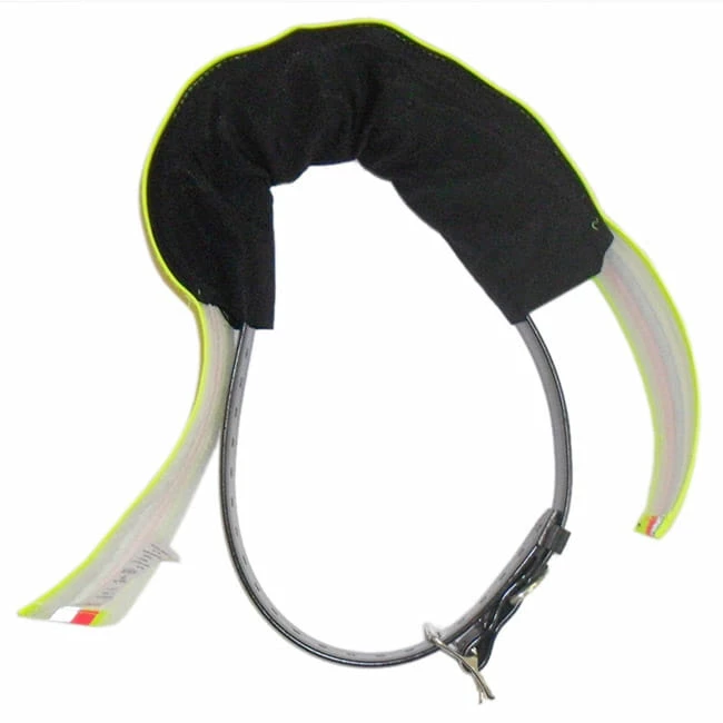 Einfache Handhabung durch Klettverschluss. Das Gerät wird in den Tunnel eingezogen, am Hundehals befestigt und das Leuchtband wird einfach darüber geklettet. Der Hund ist von der Seite gut sichtbar und das Gerät ist leicht geschützt.
