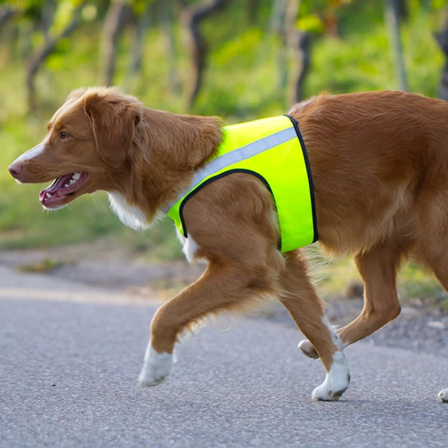 Hundebody in signalgelb aus PVC mit einem silberreflektierendem Streifen auf jeder Seite.
